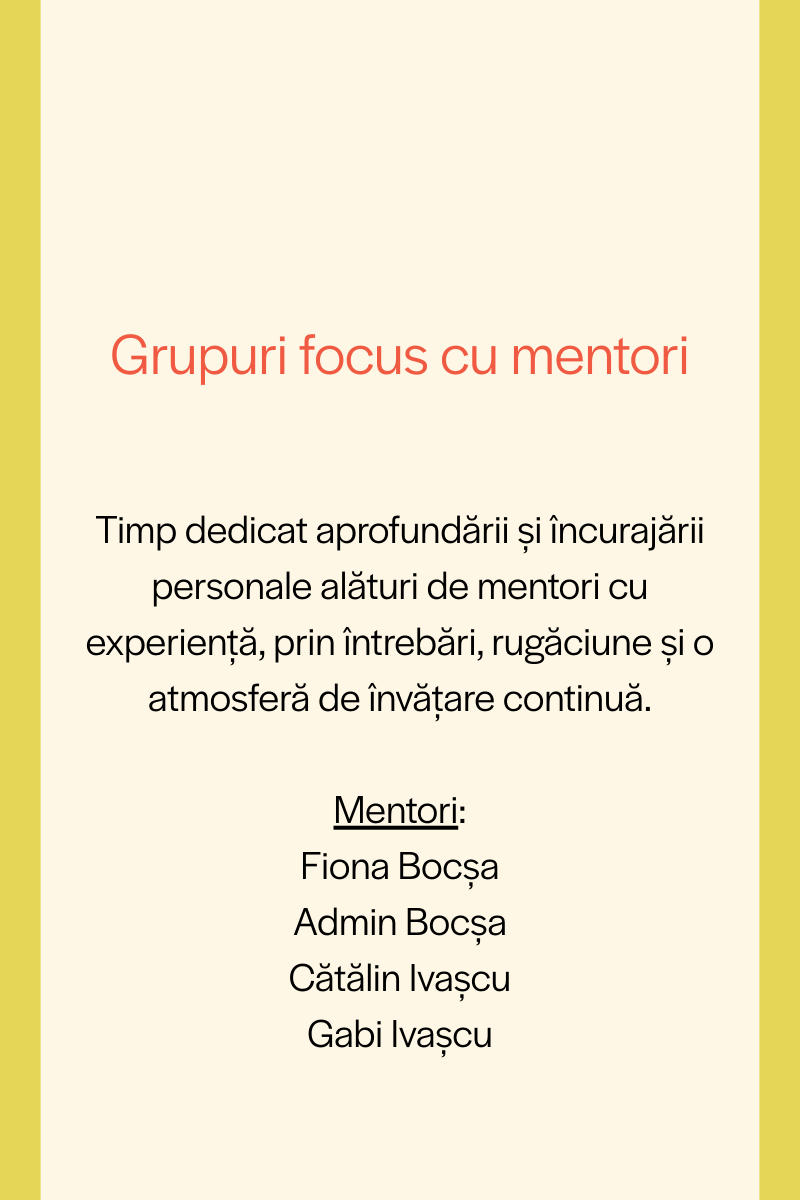 *Ziua a patra include 2 sesiuni principale, iar participanții vor putea participa la primul serviciu de închinare al Biserica Harvest Arad.